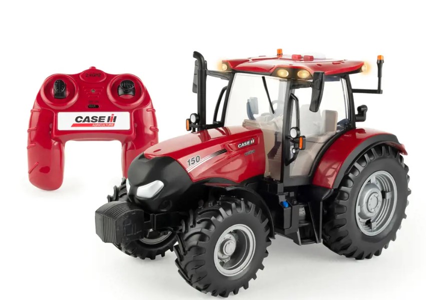 This Case IH Maxxum 150 remote control tractor features a detailed cab and interior with rubber wheels to prevent scratches. The body is made with durable plastic to hold up to hours of farming play. Kids will love the realistic sound and light effects they can control with the push of a button.