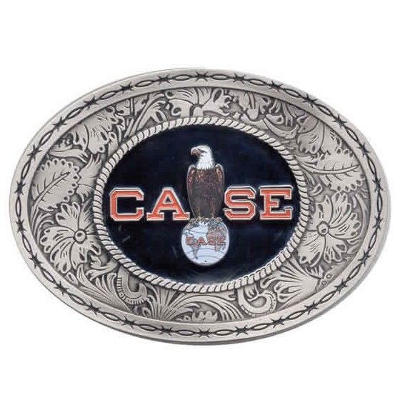 Boucle de ceinture Case IH en émail représentant un aigle sur un globe.