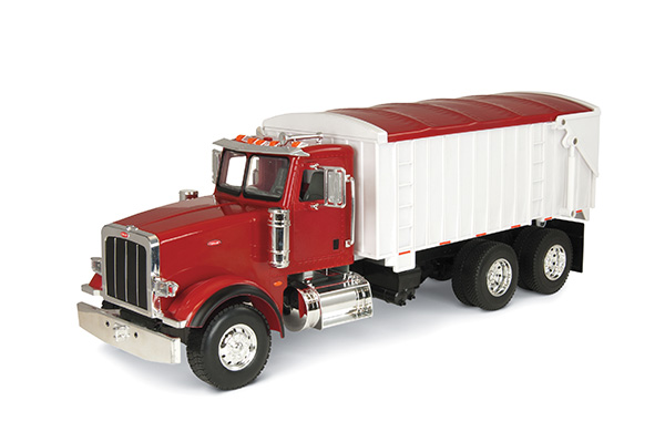 1/16 Camion Peterbilt 367 Big Farm avec boîte à grain – Incluant remorque à grain – 45’’ L x 6.5’’ L x 7.5’’ H. Camion comprend lumières et sons, portes de cabine ouvrantes, roues avant amovibles. Remorque comprend toile ouvrante, porte à grain ouvrante. Requiert batteries AAA (incluses). Enfants 3 ans et plus.